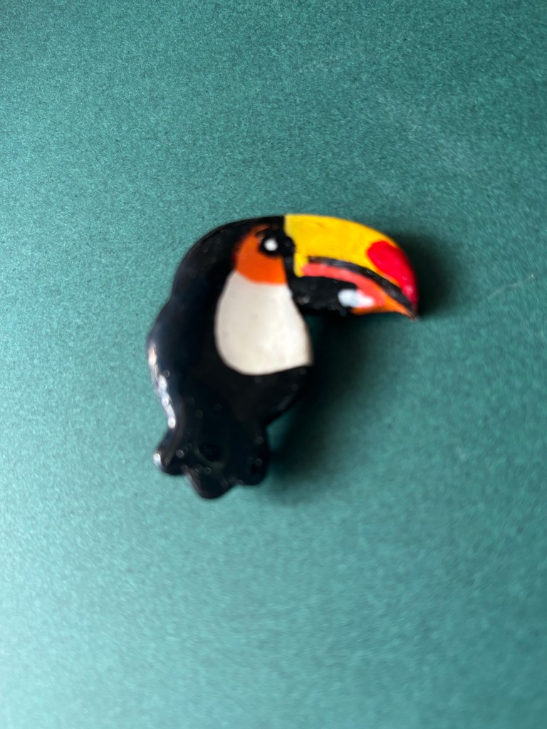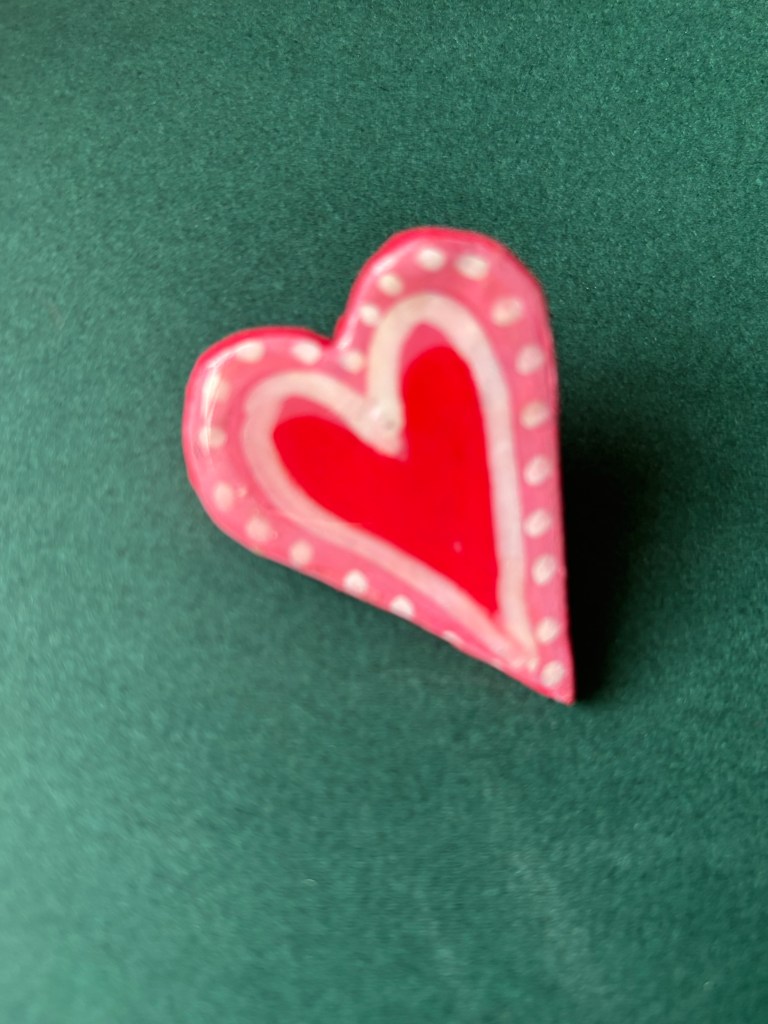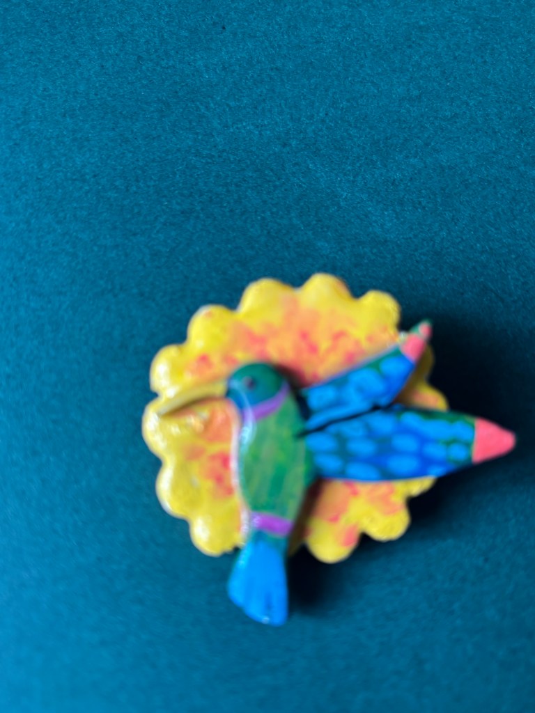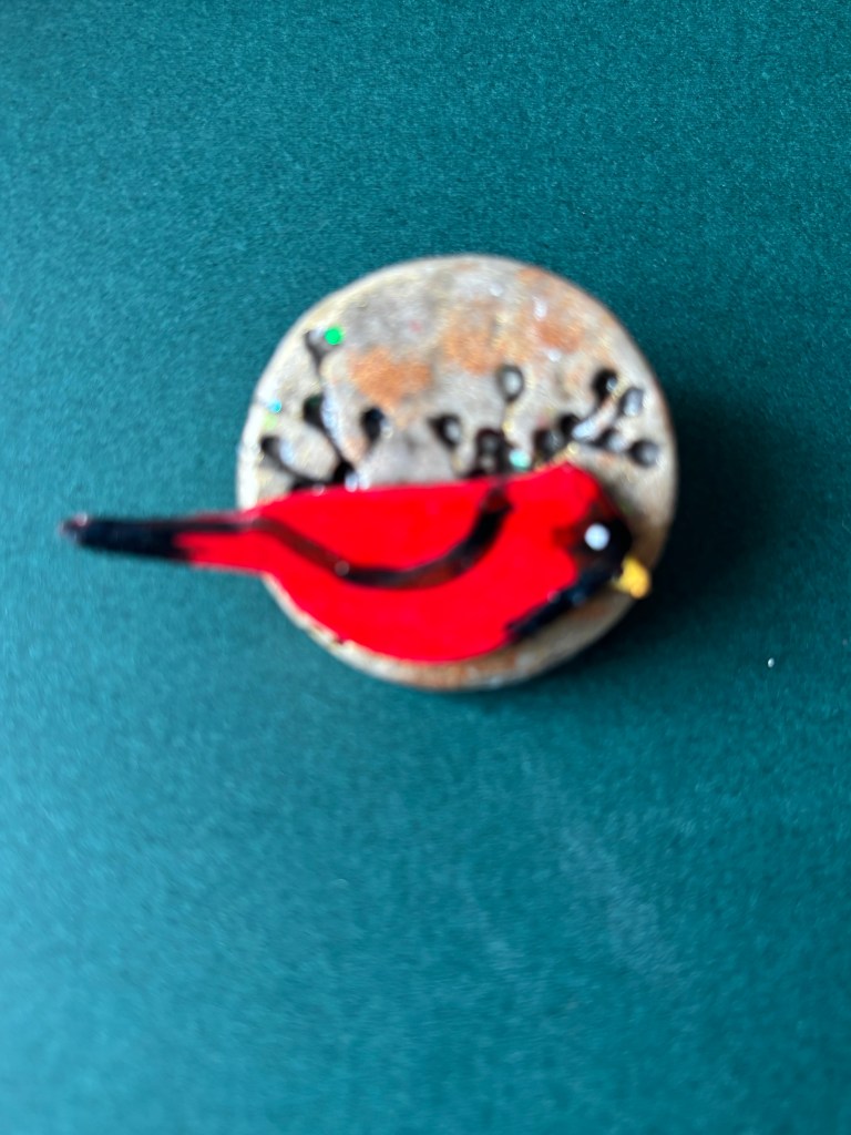 Hand made clay Christmas hanging birds are £4.75 each , brooches start from £2 each to £3.50 and botanical clay impressions from £3.50 to £5.50 .