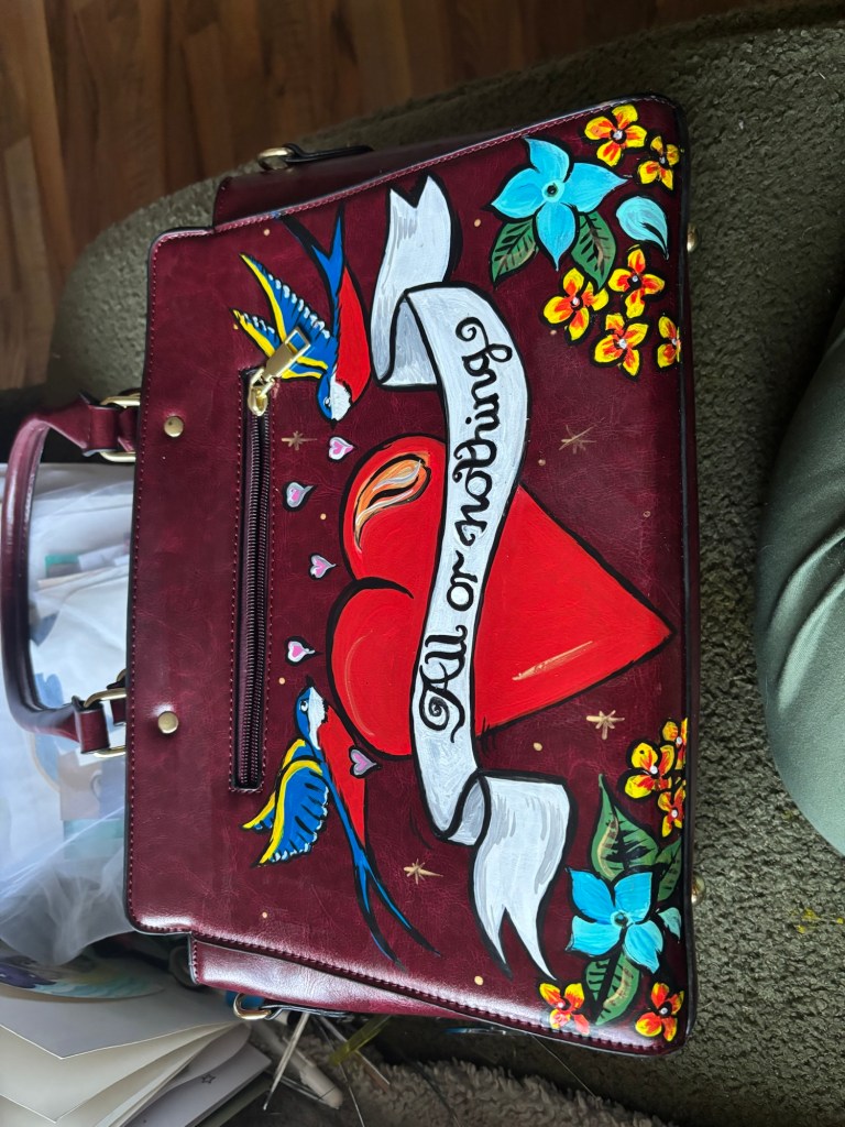 Have your chosen items painted with your individual design requirements ! Personalised designs can be added to non leather items also . Please contact me for details and a quote .
