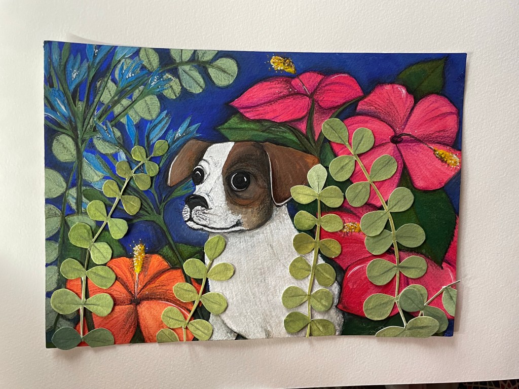This is an A4 painting in a mixture of acrylic and water colour paint . Price £ 80